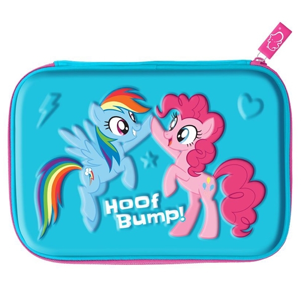 Hộp bút màu xanh tươi tắn, với họa tiết dây kéo màu hồng tạo điểm nhấn. Sản phẩm in hình nhân vật My Little Pony, chắc chắn sẽ trở thành bạn đồng hành thân thiết cho bất kỳ cô bé học sinh nào.